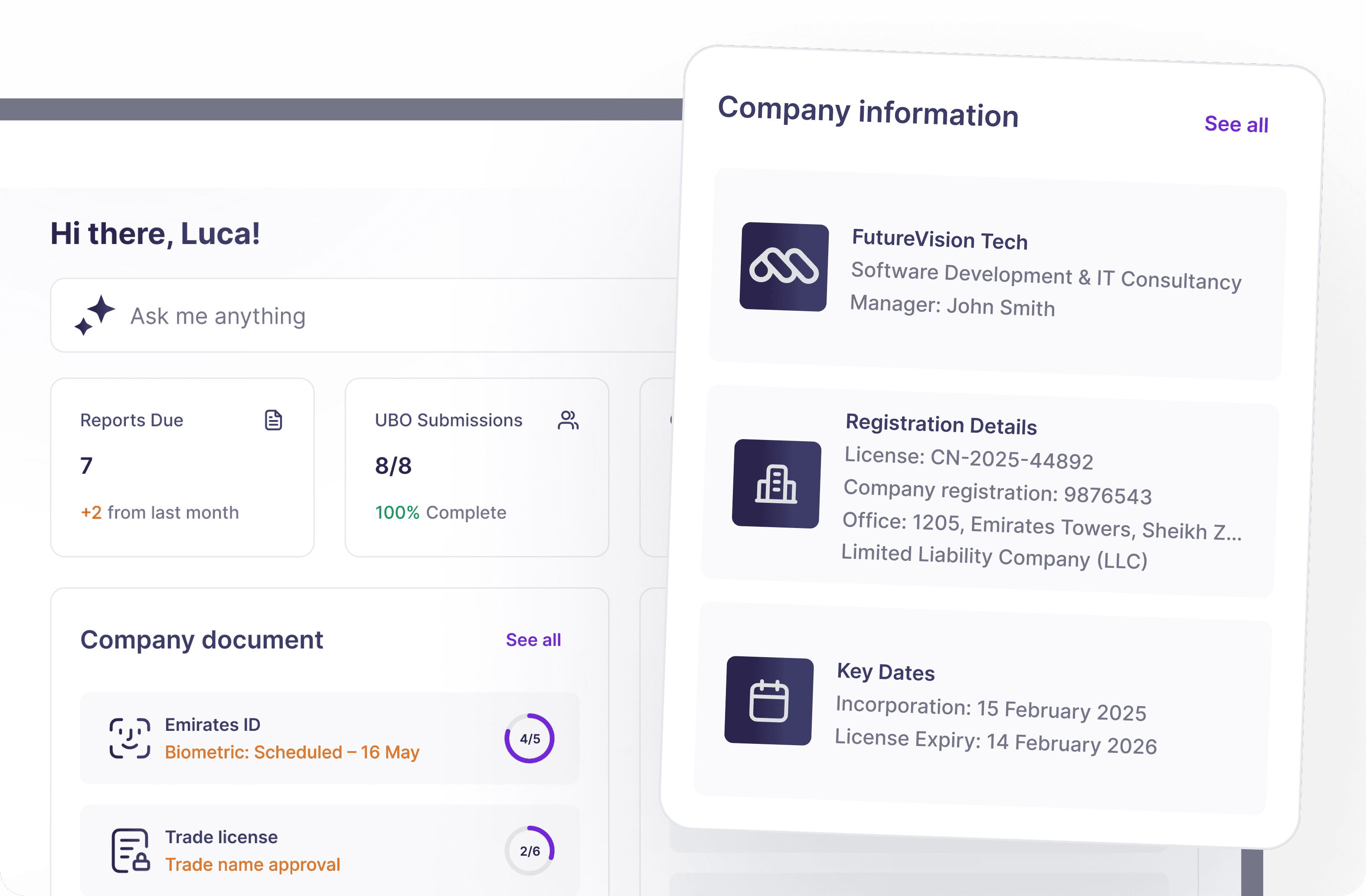 Start your Company in the GCC and manage everything from one smart, centralized dashboard.